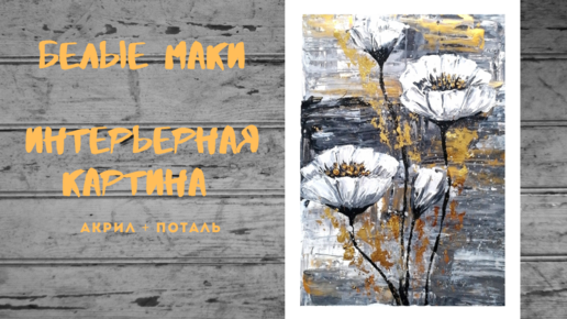 БЕЛЫЕ МАКИ акрилом. Как нарисовать цветы. Интерьерная картина с поталью.