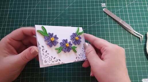 Один из этапов создания мини-открыток в технике квиллинг - сборка