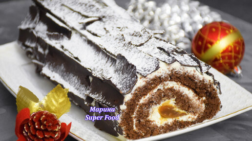 Шоколадный торт-рулет с соленой карамелью "Полено"