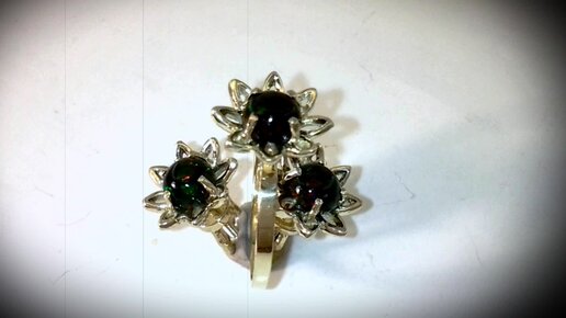 КОМПЛЕКТ- КОЛЬЦО СЕРЬГИ. ЗОЛОТО. ЧЕРНЫЙ ОПАЛ