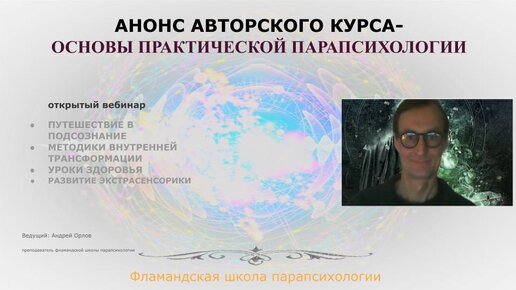 Анонс курса "Основы практической парапсихологии" Октябрь 2022 Фламандская школа парапсихологии.