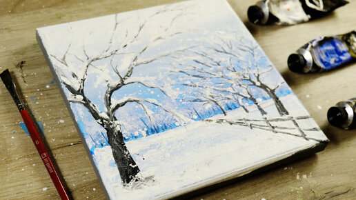 Зимние картины стали получаться, когда стал рисовать, используя эти 3 тюбика краски и слушать расслабляющую музыку