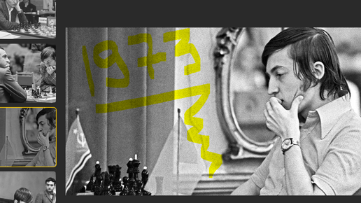 Анатолий Евгеньевич Карпов, будучи в весьма юном шахматном возрасте, белыми красиво переигрывает Гену Кузьмина на чемпионате СССР, 1973, 1-0