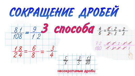 СОКРАЩЕНИЕ ДРОБЕЙ / КАК СОКРАТИТЬ ДРОБЬ ? математика 5 класс / 3 способа как сократить дробь / НОД / ПРИЗНАКИ ДЕЛИМОСТИ