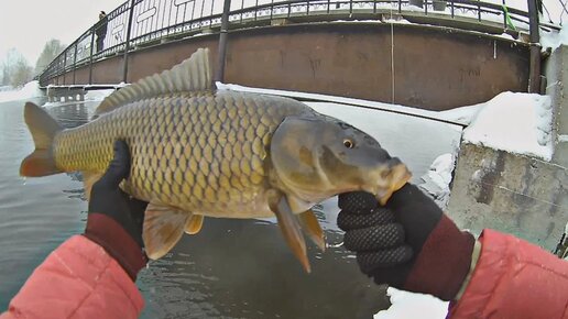 Багреные на джиг крупные КАРПЫ и ТОЛСТОЛОБЫ гнут спиннинги зимой в Арамильском пруду.