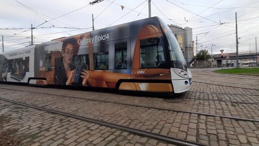 Трамвайный перекресток в Риге: 13 трамваев за 10 минут