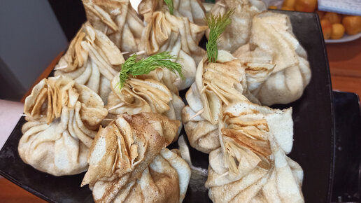 Скоро Масленица, опять блины. Вкусный завтрак и перекус из блинов " Мешочек с сюрпризом". В "Сковородку" не хожу, сама дома, такие же пеку.