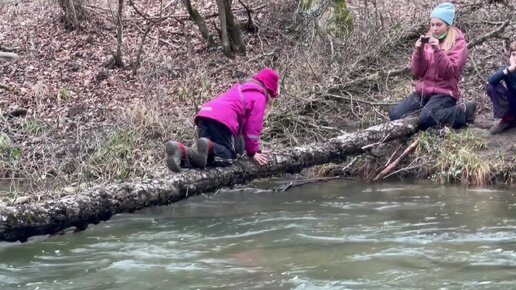 Река Чёрная-переправа по бревну.