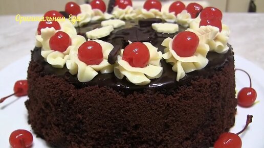 Торт "Пьяная вишня" - популярный шоколадный торт с заварным кремом и вишней | Оригинальная Еда