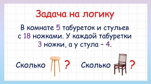 Задача на логику сколько стульев и табуреток в комнате. Сможешь ли решить?