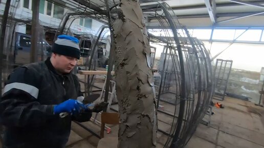 Каркас из метала, рёбра дракона, черновая обмазка каркаса. мастер Хворов Андрей.