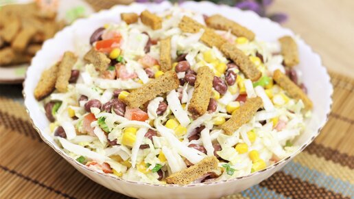 Отличная закуска💖Салат из пекинской капусты🌹 с фасолью и сухарикамиПриятного просмотра.