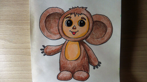 Как легко и быстро нарисовать чебурашку: понадобятся черный фломастер и цветные карандаши