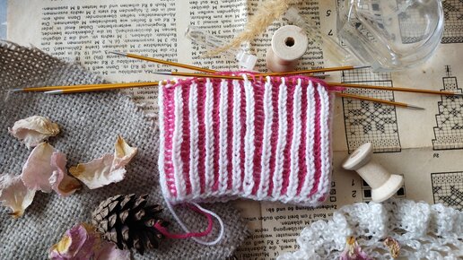 Английская двухцветная резинка для кругового вязания. Носочки получаются теплыми и красивыми.