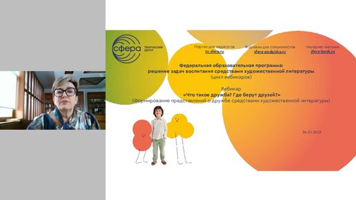 Вебинар: Формирование представлений о дружбе средствами художественной литературы