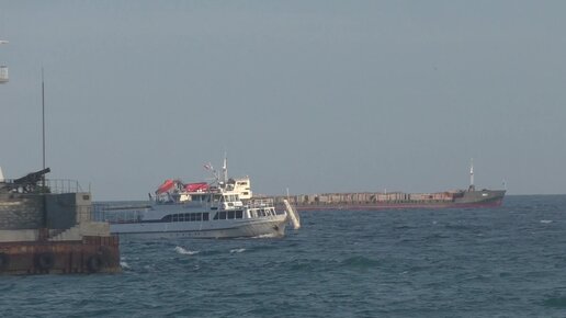 Ялта - "А. Довженко" заходит на причал. Загадка женщины, которая одна на всю Ялту купается в море, где сильный бриз