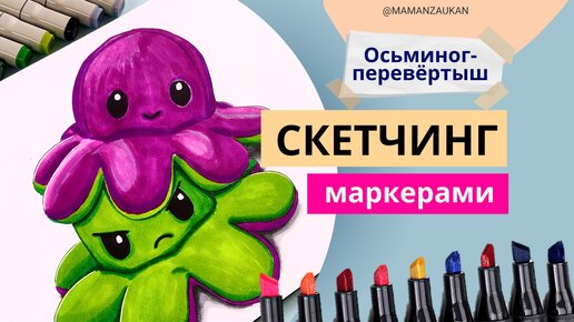Как нарисовать Осьминожку-перевертыш, игрушка-антистресс маркерами