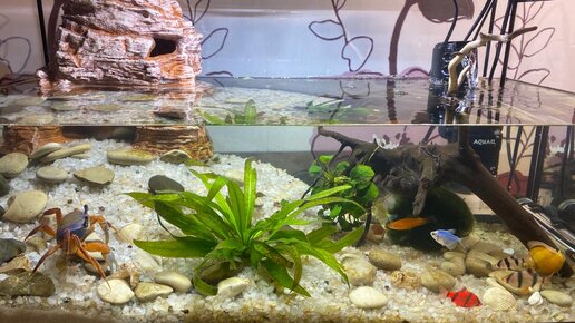 Жизнь нашего радужного краба и аквариумных рыбок.