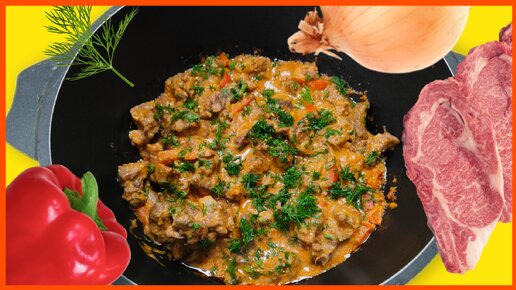 Идея для ужина! Говядина тушёная в томатно - сметанном соусе