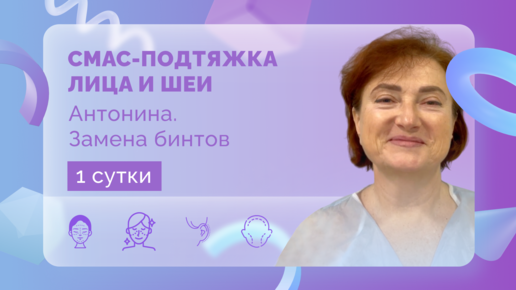СМАС-подтяжка лица и шеи. Антонина. Первые сутки после операции. Замена бинтов