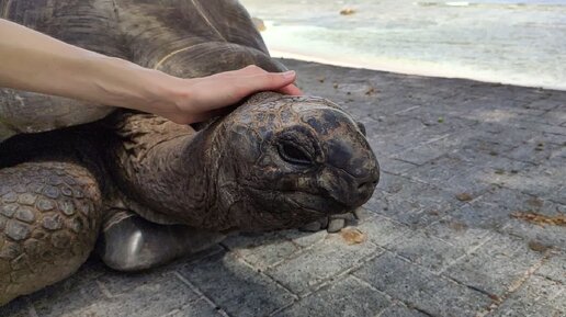Жена гладит гигантскую черепаху на Сейшелах. Эпизод 2