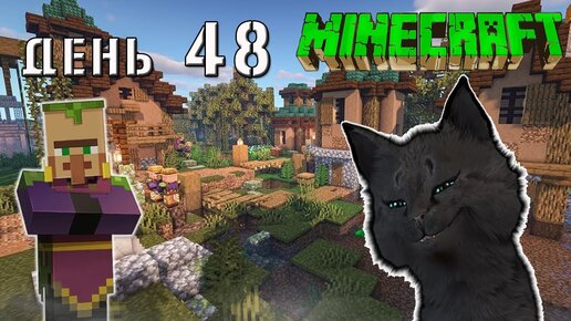 Minecraft СУПЕР КОТ 🐱 НАШЕЛ ПЕЩЕРЫ И ДЕРЕВНЮ В ПОЛЕ ВОЗЛЕ ЛЕСА 🐱 ВЫЖИВАНИЕ 100 ДЕНЬ 48