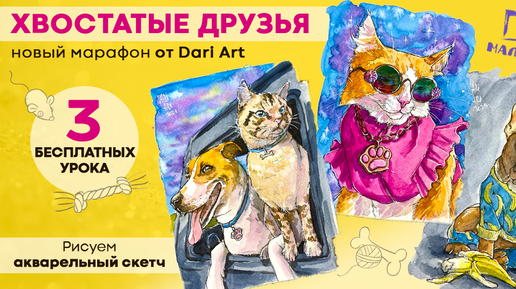 Новый марафон БЕСПЛАТНЫХ уроков по скетчингу "Хвостатые друзья"