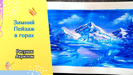 Как нарисовать зимний пейзаж в горах | Красивый пейзаж для начинающего художника