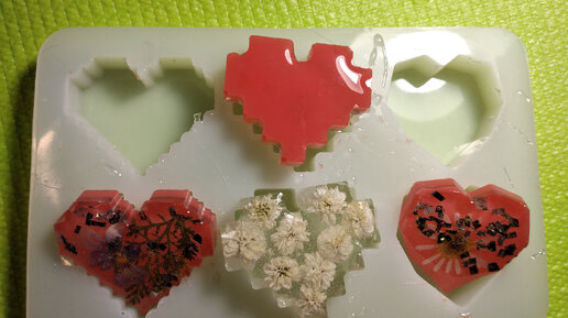 СЕРДЕЧКИ-ПИКСЕЛИ из эпоксидной смолы. БРЕЛКИ и ПОДВЕСКИ
