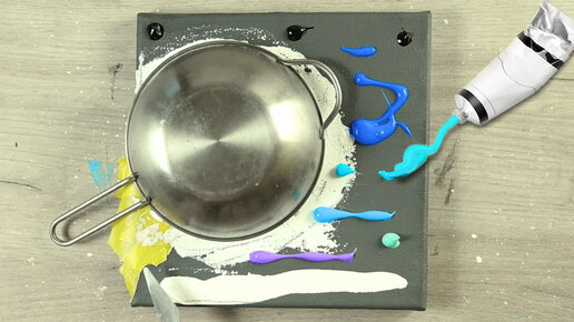 Рисую только с кастрюлей IKEA. Космическая луна на холсте за 5 минут, пейзаж рисую поэтапно