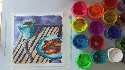 Урок по рисованию натюрморта гуашью. Рисуем вместе чашку кофе и печенье. Мастер-класс.