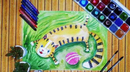 Как нарисовать кошку для детей. Рыжий кот детский рисунок.