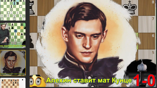 Александр Алехин "дюссельдорфирует" Вильгельма Кунце белыми, во французской защиты в 1908, 1-0. Покажу 100%-й мат в доигрывании