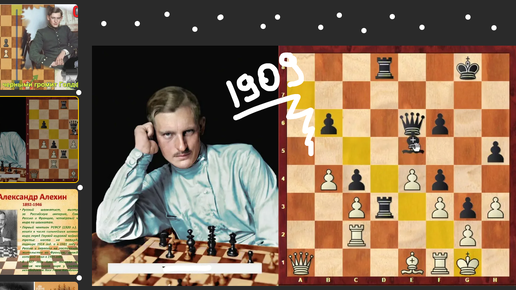 Александр Алехин черными играет французскую защиту против Эльяшева: красивая игра молодого маэстро в 1909 году, Петербург
