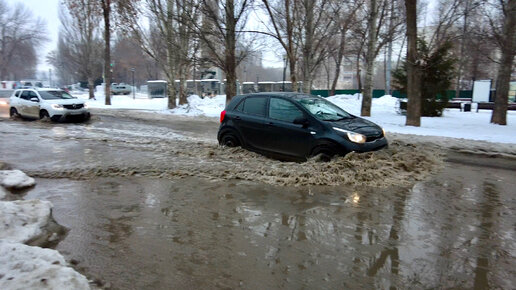 В Самаре затопило участок дороги на проспекте Юных Пионеров