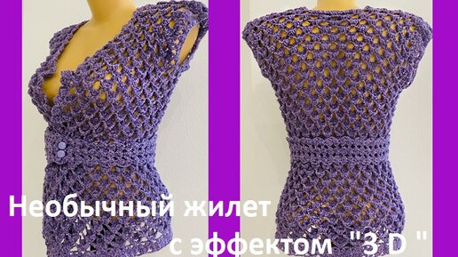 Очень красивый , необычный жилет ,с эффектом 3Д ,вязание крючком