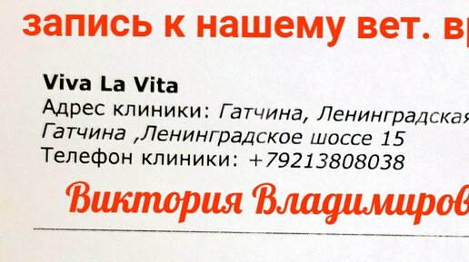 В видео АДРЕС и ТЕЛЕФОН для записи к НАШЕМУ вет ВРАЧУ Виктория Владимировна ." VIVA LA VITA "