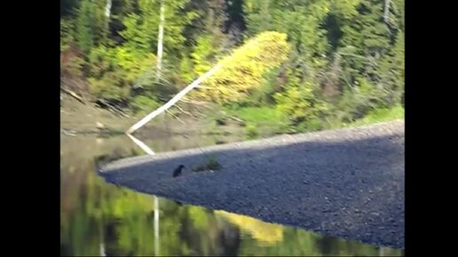 Норка решила побегать наперегонки с моторным катамараном