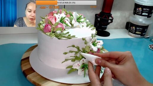 Оформление торта с розами и лилиями_How to make a cake with lilies and roses
