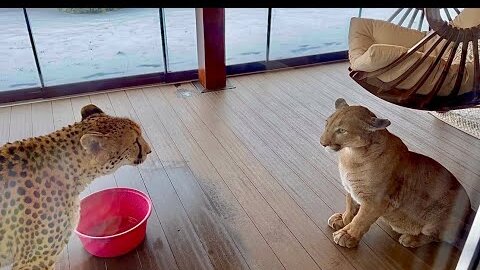 Уникальная прогулка - Пума Месси и гепард Герда гуляют наедине самостоятельно