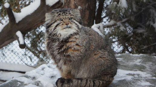 Старейшина манул Караганда прогулялся по свежему снегу.