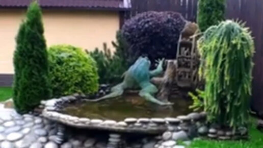 оформление усадьбы.скульптуры из цемента. цветники. пруд во дворе мастер из России.