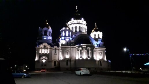 Вознесенский собор в городе Новочеркасске. Красиво подсвечен ночью.