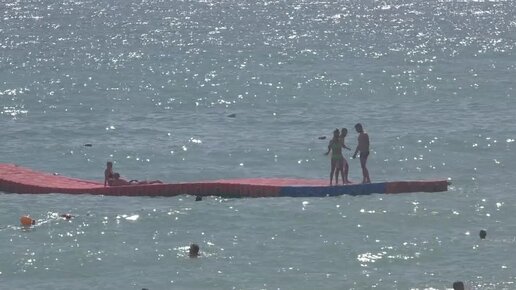Ялта - Приморский пляж. Сильный бриз отнес понтон от берега. Тут же его облюбовали отдыхающие. Спасатель свистел, а толку