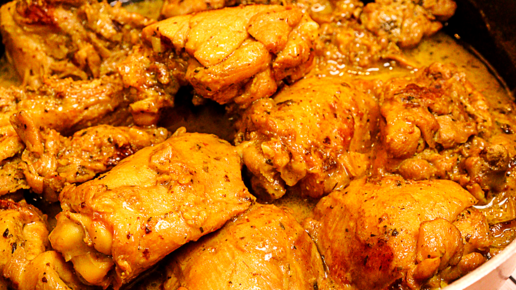 Курица в необычном луковом соусом с мятой . Готовить просто, а получается вкусно. Плюс идеально запеченная в духовке картошка.