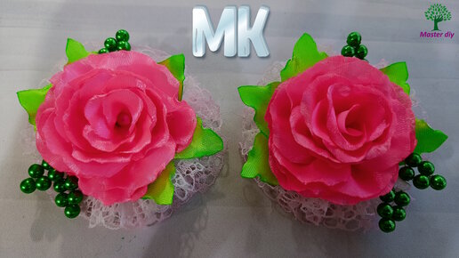Миленькие бантики с розой из атласной ленты Легко и просто Цветы из атласной ленты Мастер класс\Master diy канзаши