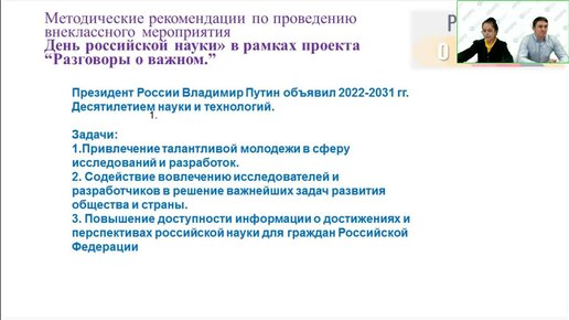 Вебинар “Методические рекомендации по проведению внеклассного мероприятия «День российской науки»