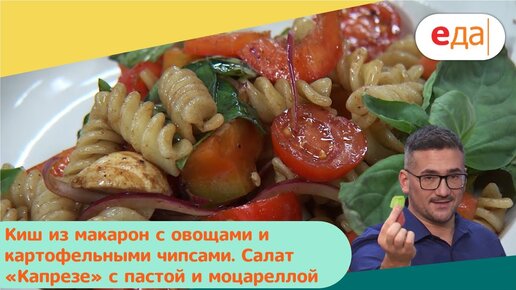 Киш из макарон с овощами и картофельными чипсами. Салат «Капрезе» с пастой | Дежурный по кухне