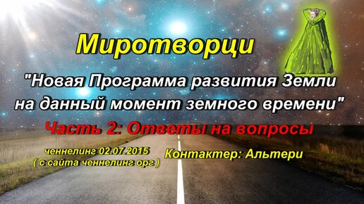 Ченнелинг Миротворци "Новая Программа развития Земли на данный момент земного времени" Часть 2: ответы на вопросы 2015г