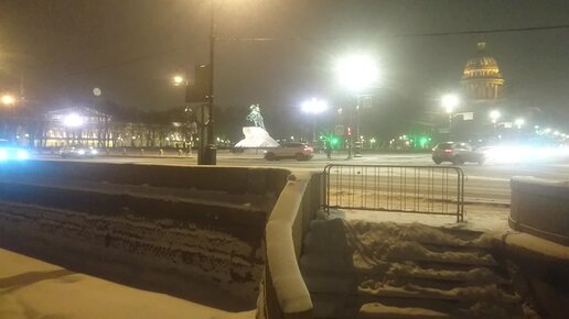 Санкт-Петербург зимней ночью 2023. Адмиралтейская набережная, Сенатская площадь (1). Зима вернулась в Питер.